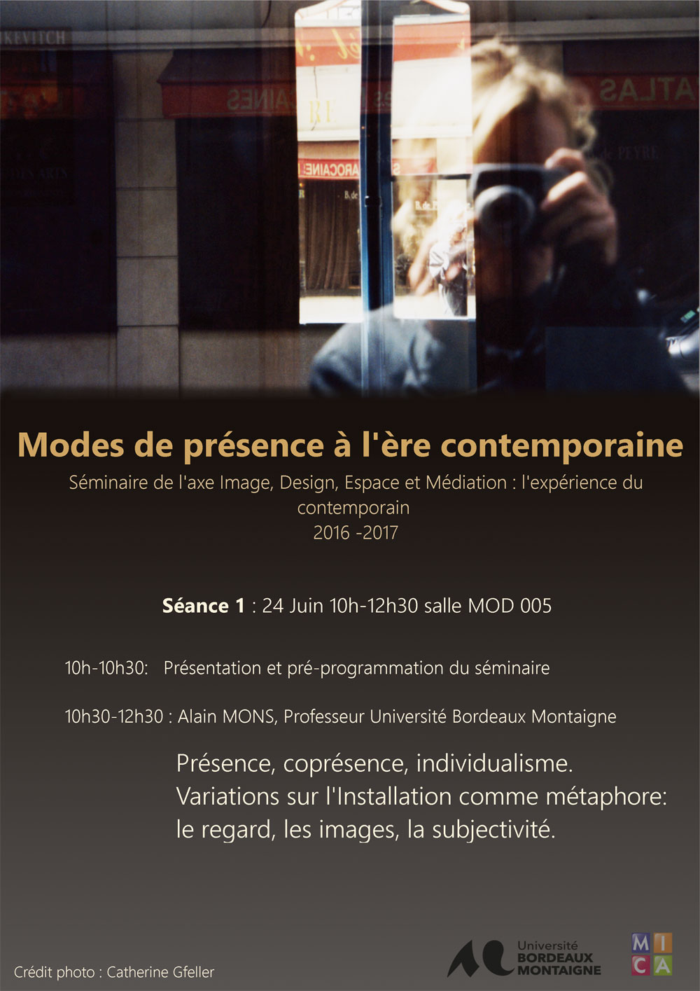 Le MICA (MÉDIATIONS, INFORMATIONS, COMMUNICATION, ARTS) est un laboratoire de recherche de l’Université Bordeaux Montaigne, labellisé comme Unité de Recherches (UR 4426) de l’École doctorale Montaigne-Humanités.